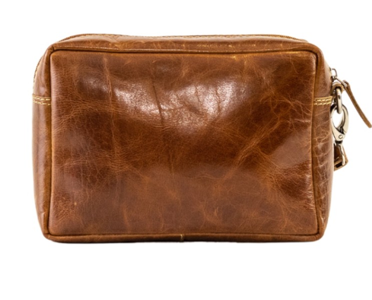 Bolso de mano para hombre, en piel vacuno color cuero. Modelo con asa de mano, cierre de cremallera. De construcción soft y medidas aproximadas de: 20 x 15 x 7 cm. Bolsillos interiores y exteriores. Herrajes color Plateado.